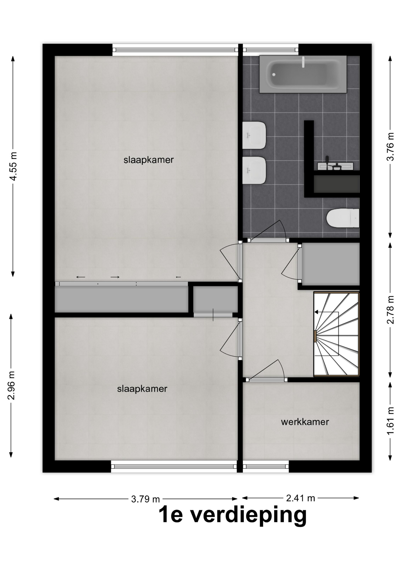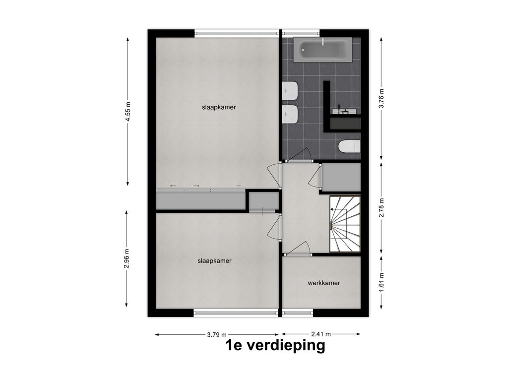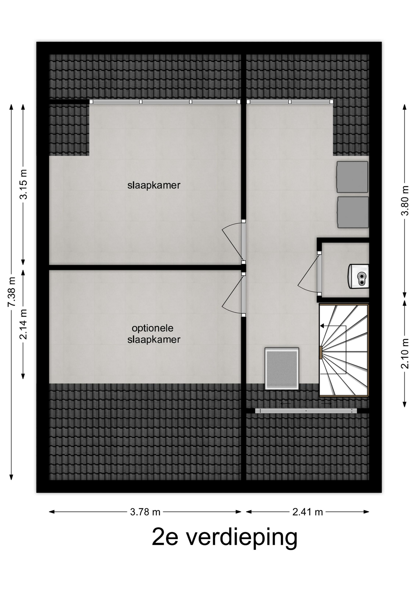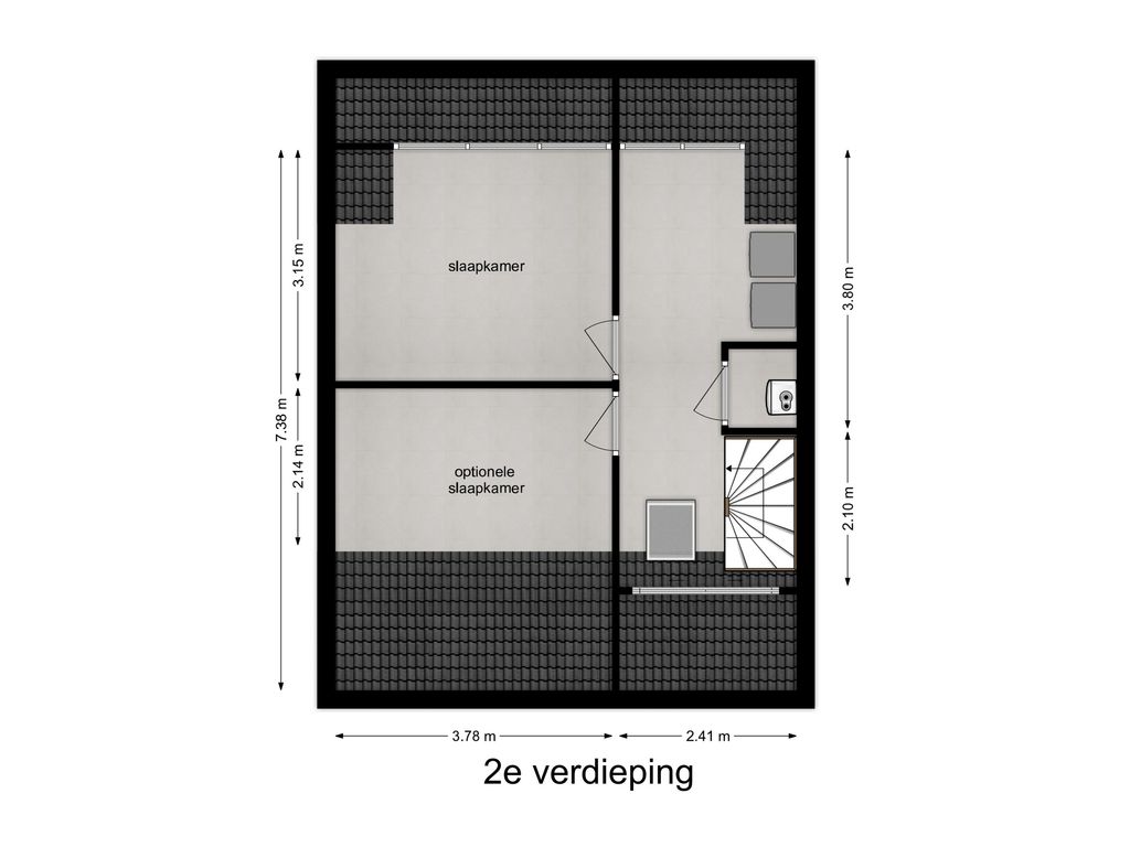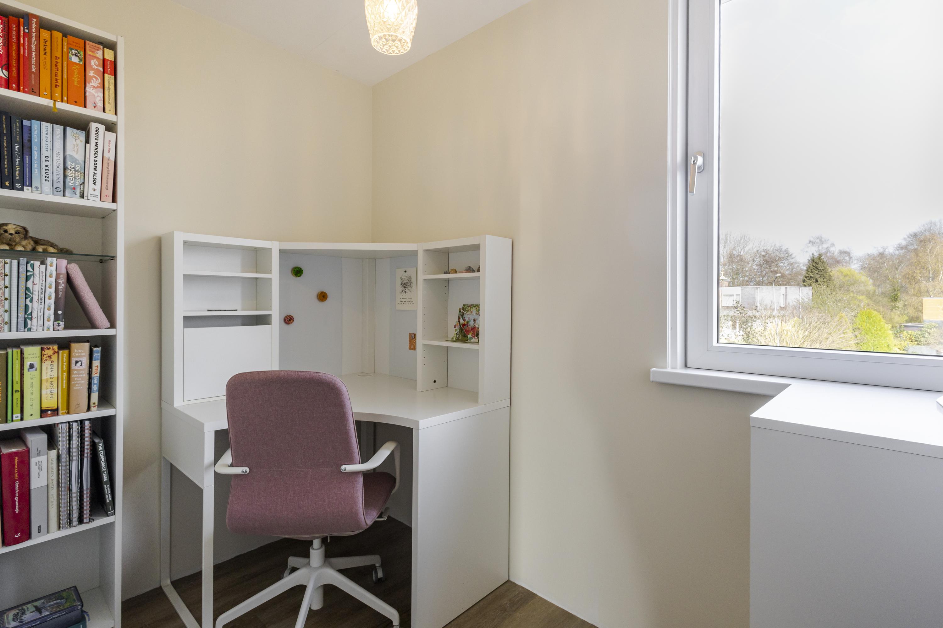 Op de tweede verdieping vind je een ruime overloop met witgoedopstelling. De grote dakkapel aan de achterzijde zorgt voor veel licht en extra ruimte, zowel op de overloop als in de slaapkamer. De extra kamer aan de voorzijde is met het plaatsen van een dakraam eenvoudig om te toveren tot een volwaardige slaapkamer.