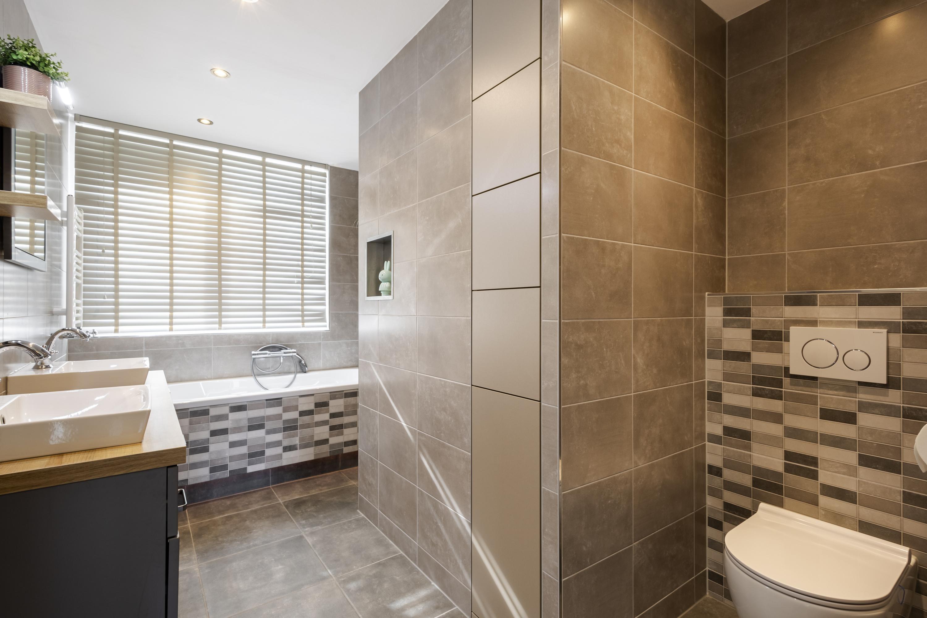 De eerste verdieping beschikt over twee ruime slaapkamers, een fijne werkkamer, vaste kastruimte en een luxe badkamer met ligbad, inloopdouche, tweede toilet, dubbel wastafelmeubel, ingebouwde kastruimte en vloerverwarming. Ook de overloop en werkkamer zijn voorzien van vloerverwarming.