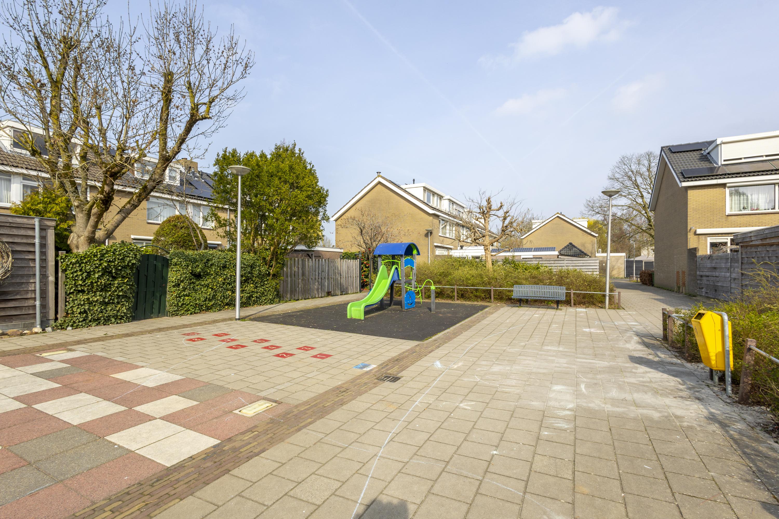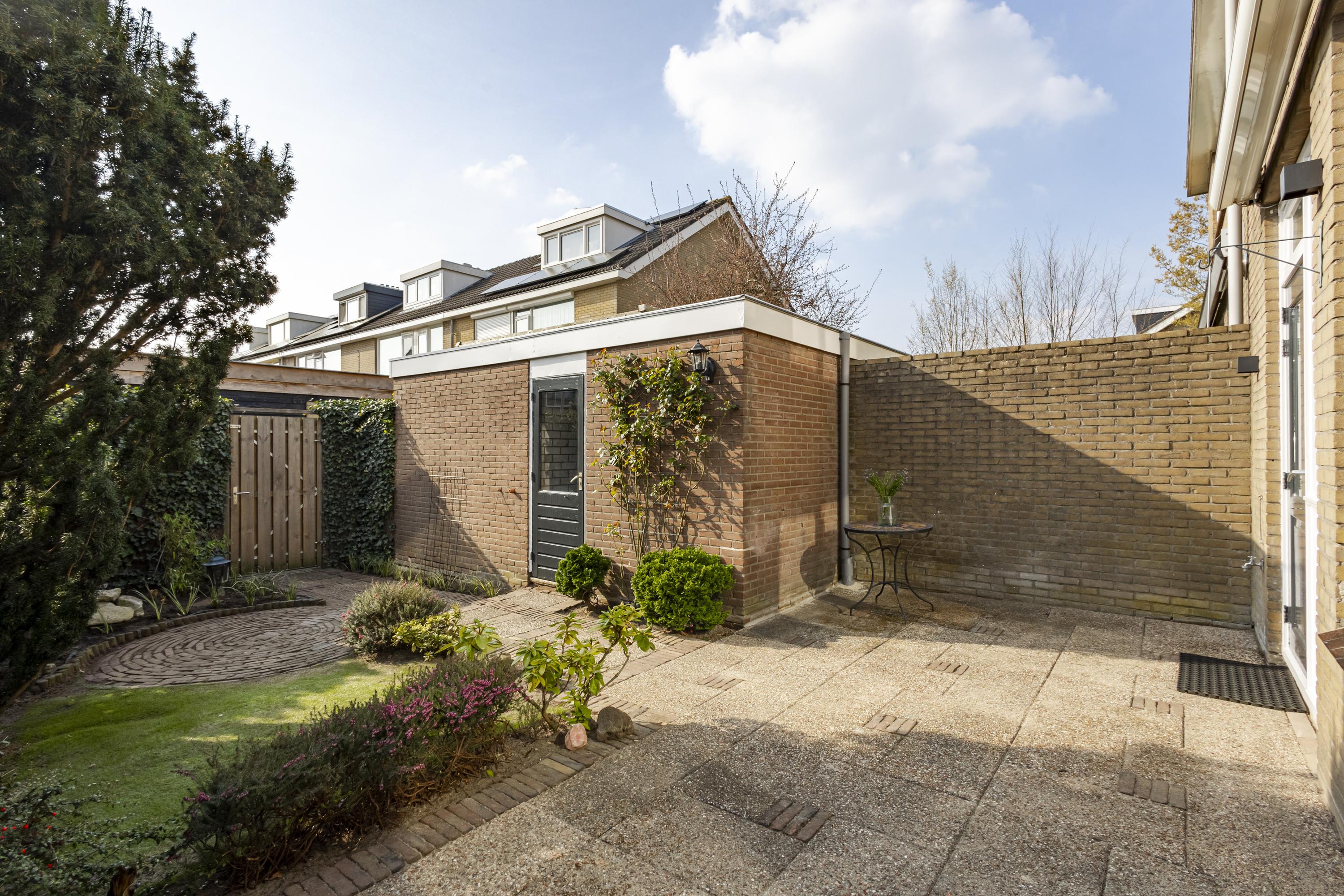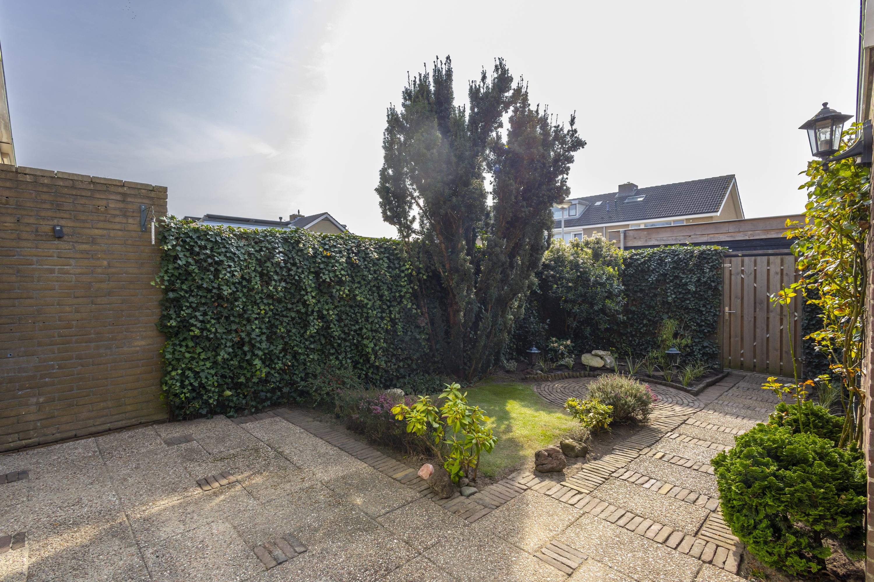 De achtertuin ligt op het zonnige zuidwesten, is netjes aangelegd en biedt een heerlijke plek om te ontspannen en te genieten van lange zomerdagen. Met een stenen berging en achterom is ook aan het praktische gedacht. In de directe omgeving zijn diverse speelplaatsen en voor een frisse neus wandel je zo het park in.