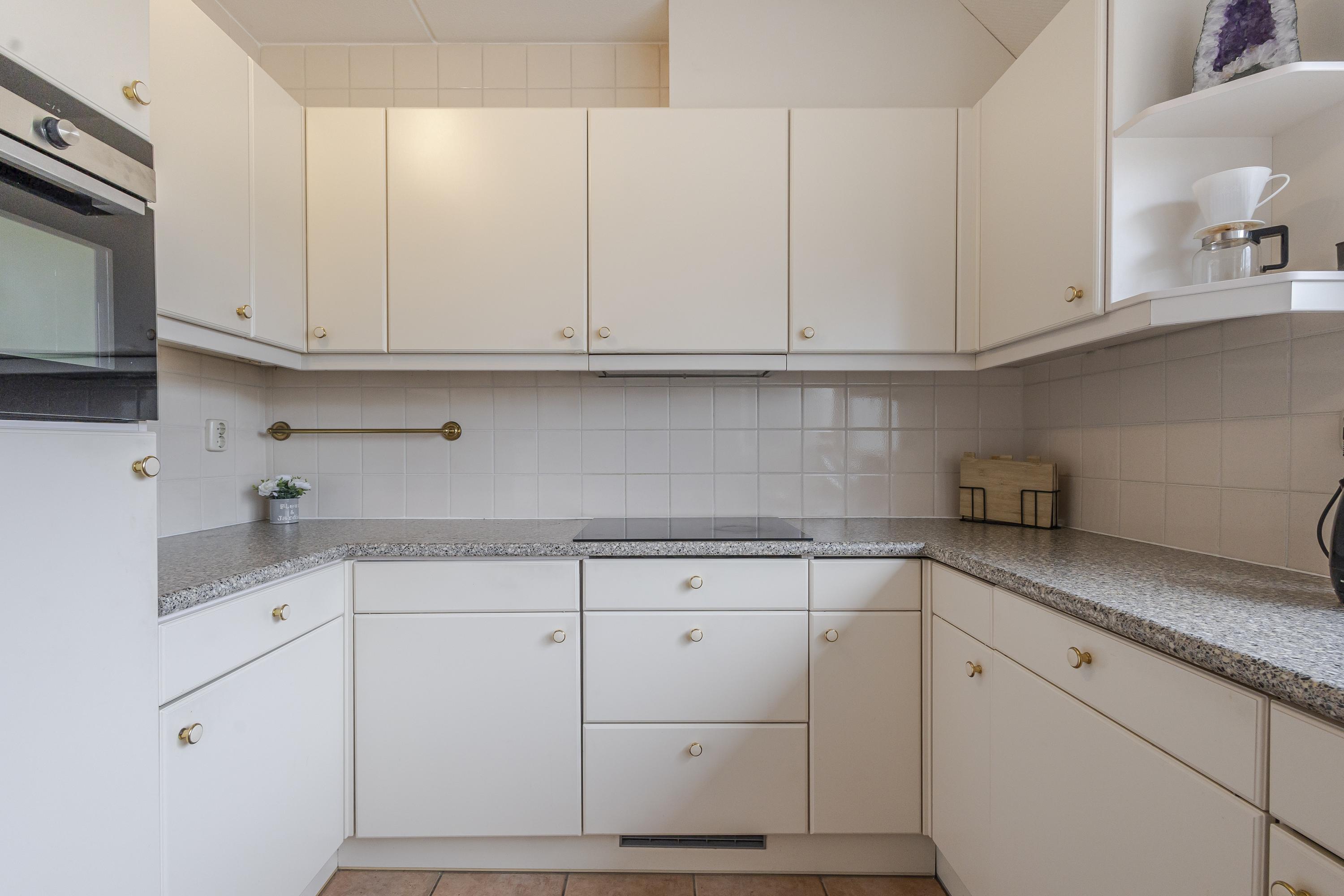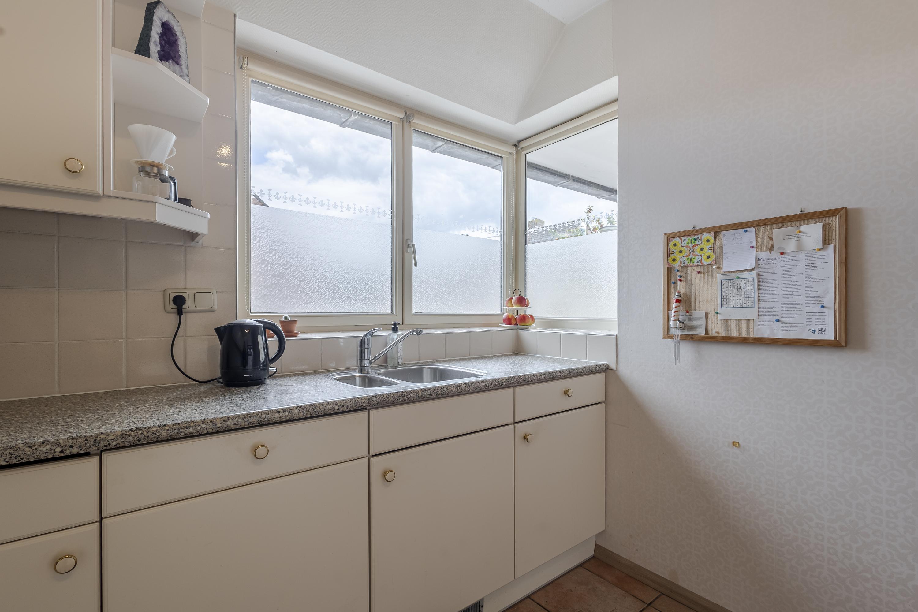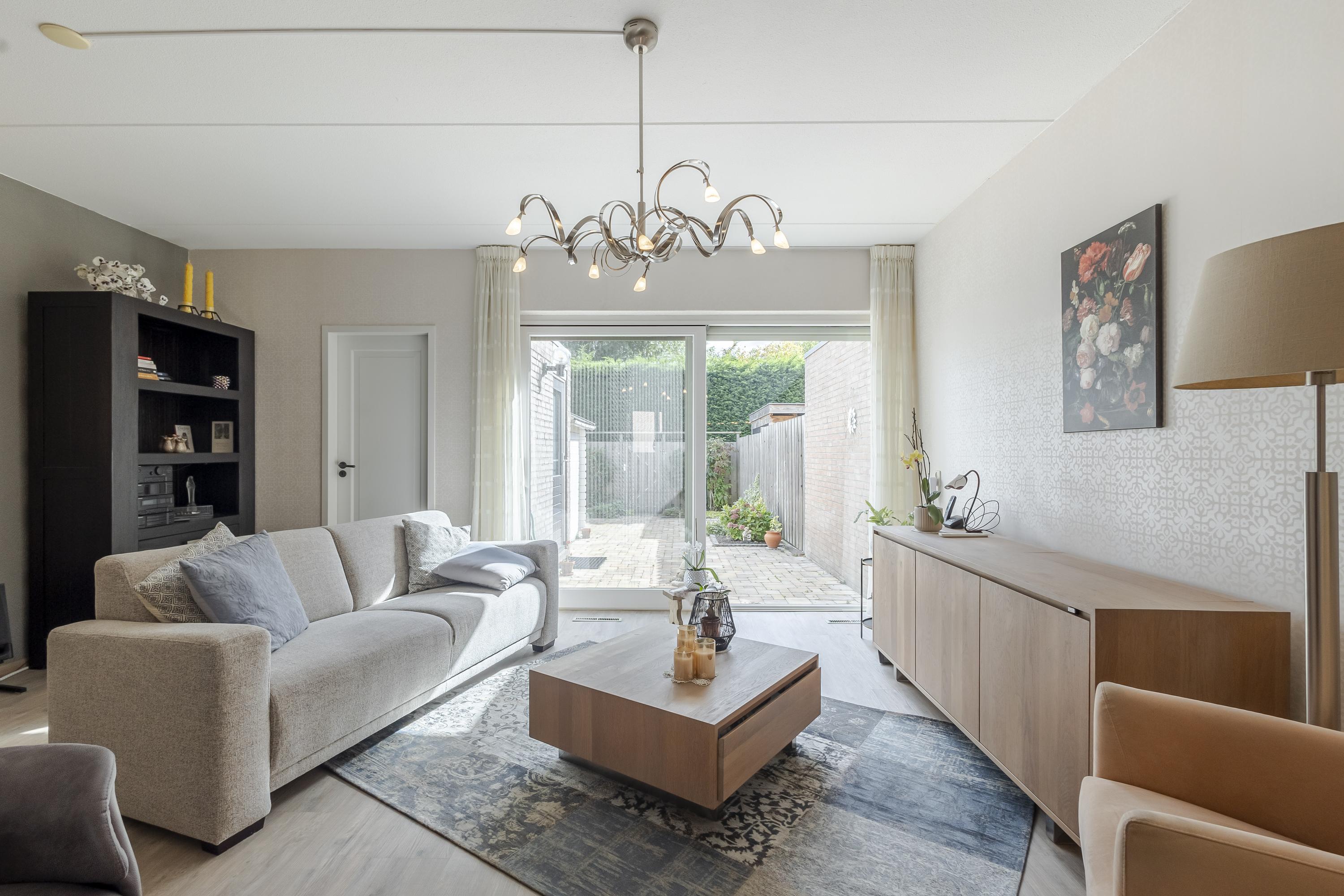De woning beschikt over een royale en lichte woonkamer met schuifpui naar de zonnige achtertuin (gelegen op het zuiden!). Hier kun je in alle privacy genieten van het groen om je heen. Geen inkijk en geen drukte maar rust en ruimte. Aan de voorzijde vind je een sfeervolle keuken met erker, waar het ochtendlicht prachtig binnenvalt.