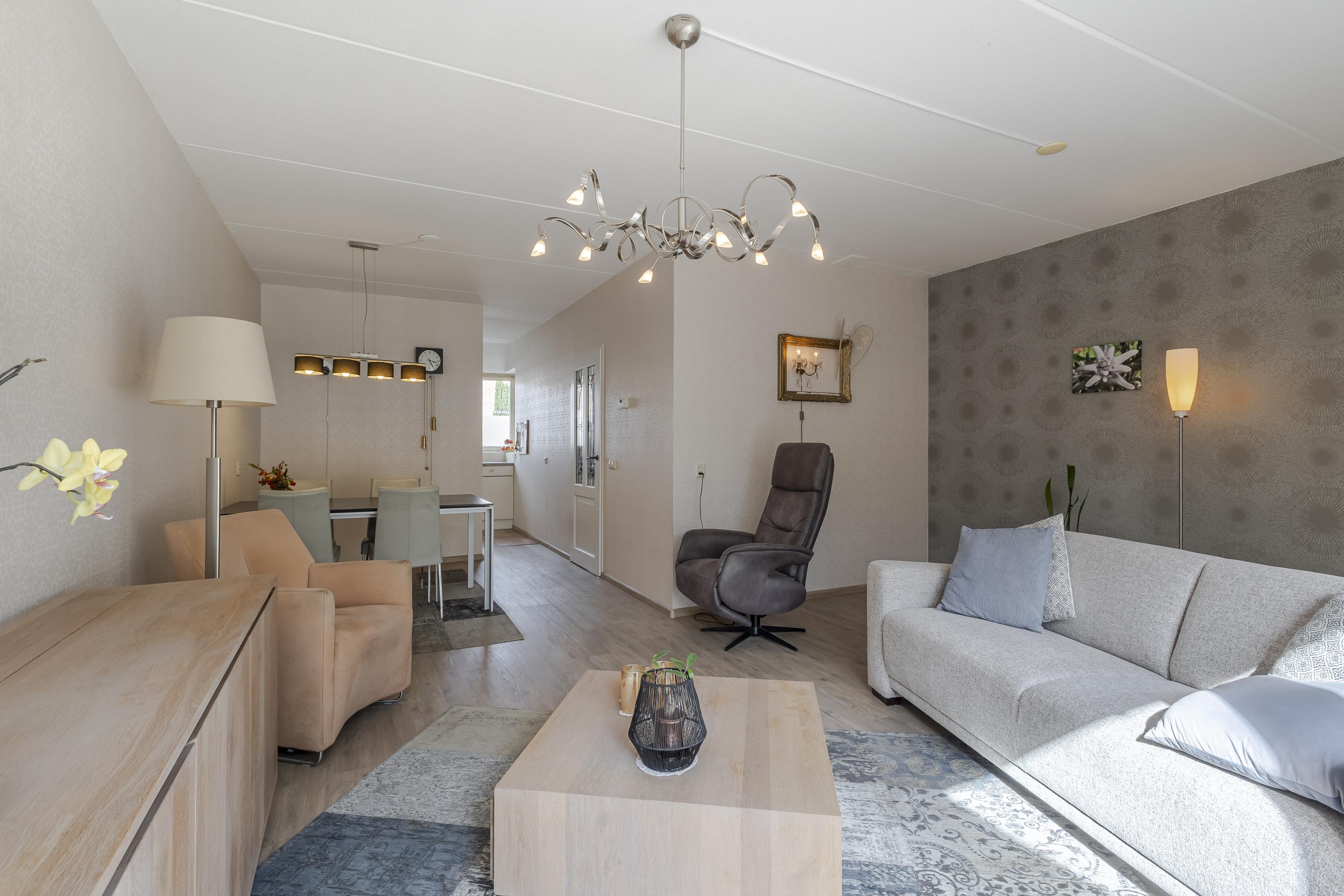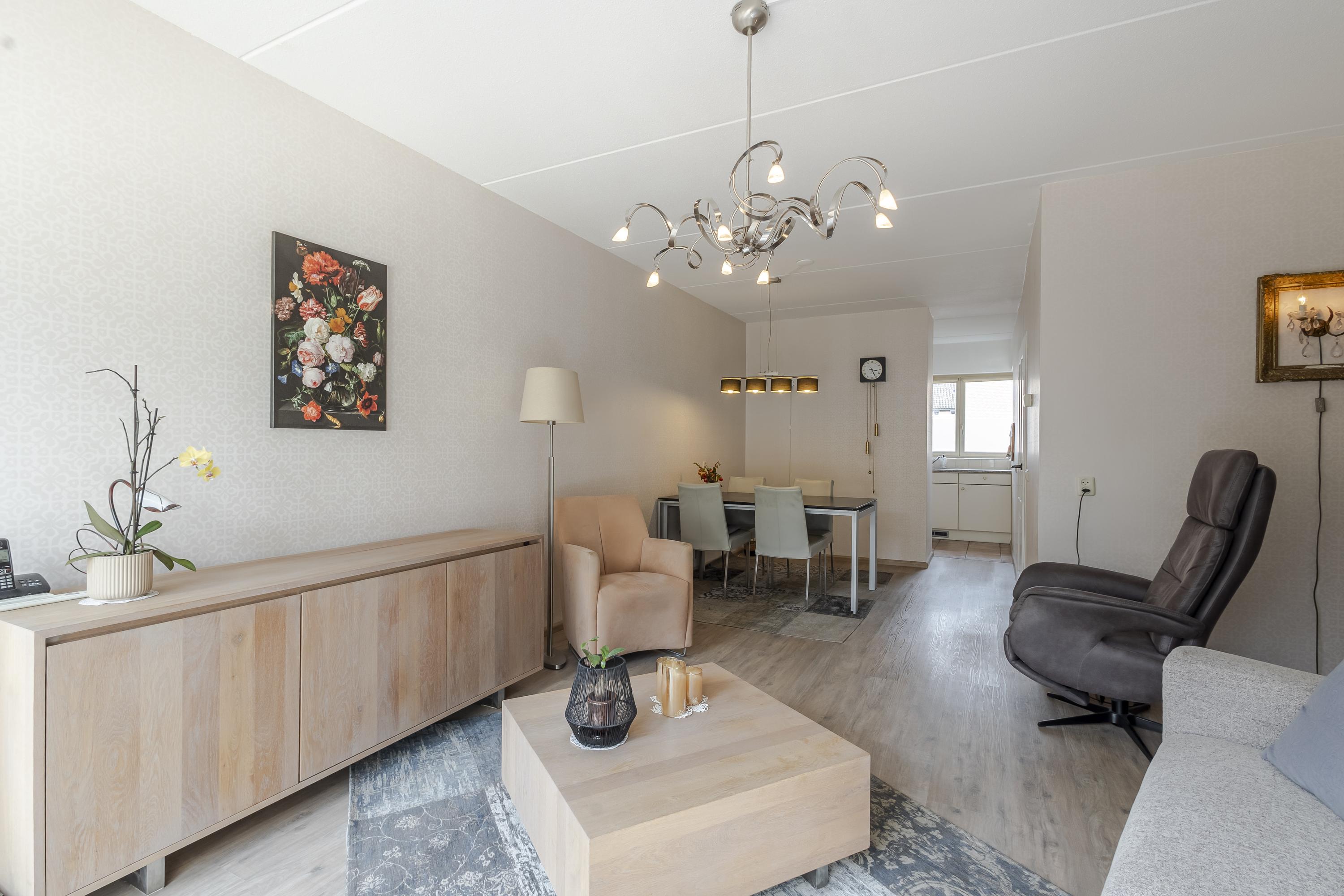 • Ruime woonkamer met schuifpui en gezellige keuken met erker