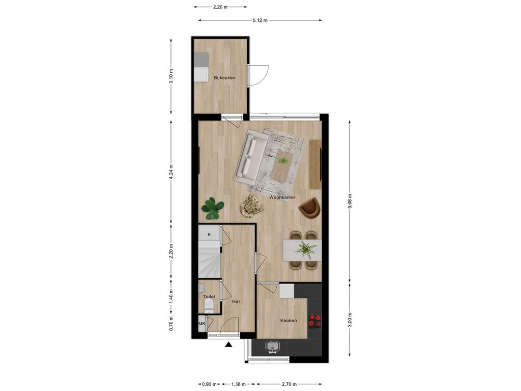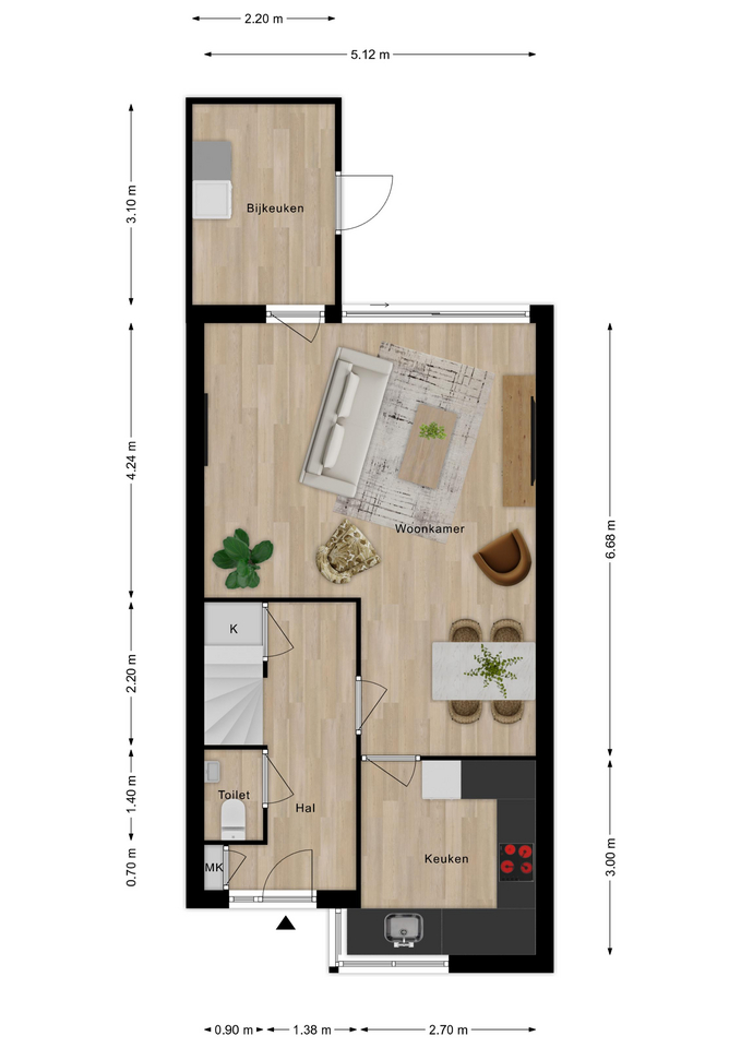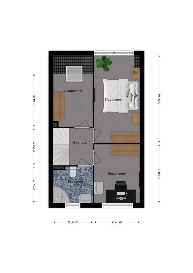 Op de verdiepingen vind je maar liefst vier slaapkamers en een nette badkamer. Perfect voor een groeiend gezin of voor wie graag een werkplek of hobbykamer wil creëren.